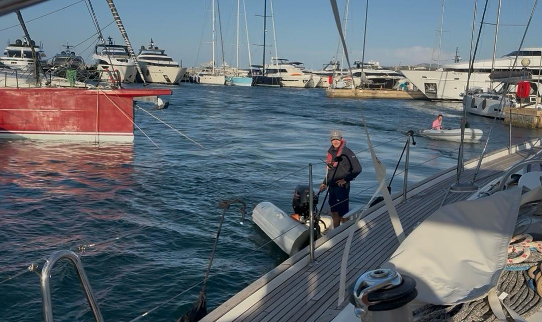 Tuvimos un incidente a la salida del puerto de La Caletta, ya que tocamos fondo en una zona donde el programa de navegación Navionics indicaba cinco metros de profundidad. Fue necesario bucear, para buscar la forma de desencallar la quilla, y conseguimos hacerlo moviendo las piedras que entorpecían la maniobra.